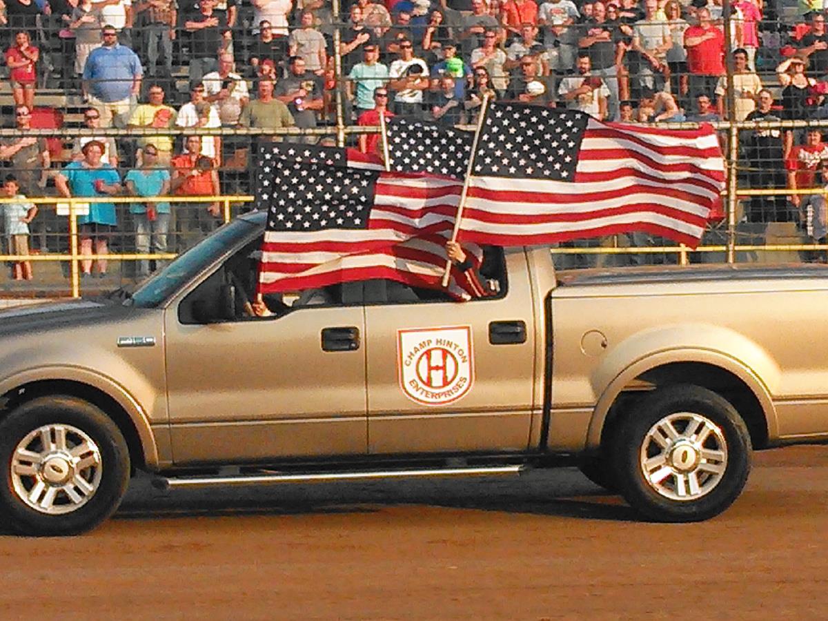 Tri-State Speedway in Pocola, Oklahoma, hosted the second night of a double-header sprint car trip through the states of Missouri, Arkansas and Oklahoma. The race took place on June 14 (Flag Day) and Michael was one of four OCRS drivers selected with the honor of displaying our nation's colors during parade laps around the track as the Star Spangled Banner played.
