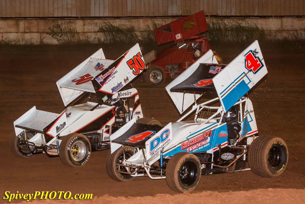 Robert Sellers (4x) goes inside of Zach Chappell (50z) as Jeff Garnett lurks on the high side (Mike Spivey Photo)