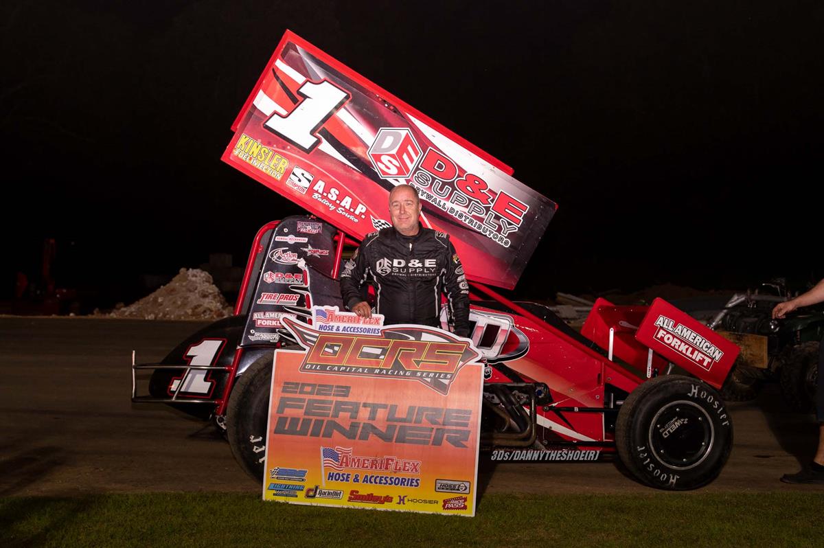 (Photos by Danny Clum, Richard Bales) John Rittenoure - COLCORD, Okla. (May 26, 2023) - It has been six years since Sean McClelland last raced with the AmeriFlex Hose & Accessories Oil Capital Racing Series. That last win came in the coveted 2017 AmeriFlex Challenge. Friday McClelland returned and picked up where he left off winning at the all-new Arrowhead Speedway.